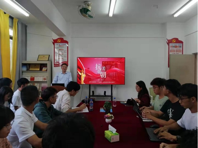 "History is not a little girl that anyone can dress up. We need to restore the original face of history." With respect for the history of the Anti US Aid to Korea period, on October 19th, Yang Weiping, Secretary of the Party Committee of the School of Environmental Science and Engineering, conducted a study classroom activity in the Party Building Activity Room of Dongjiu Community with the theme of "Anti US Aid to Korea". Counselors Zhang Ke, Wang Yongzhou, as well as all class leaders, youth league leaders, and counselor assistants of the 21st level participated in this activity.